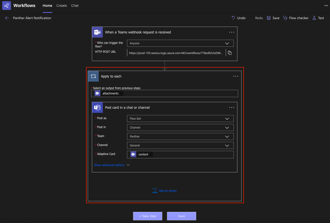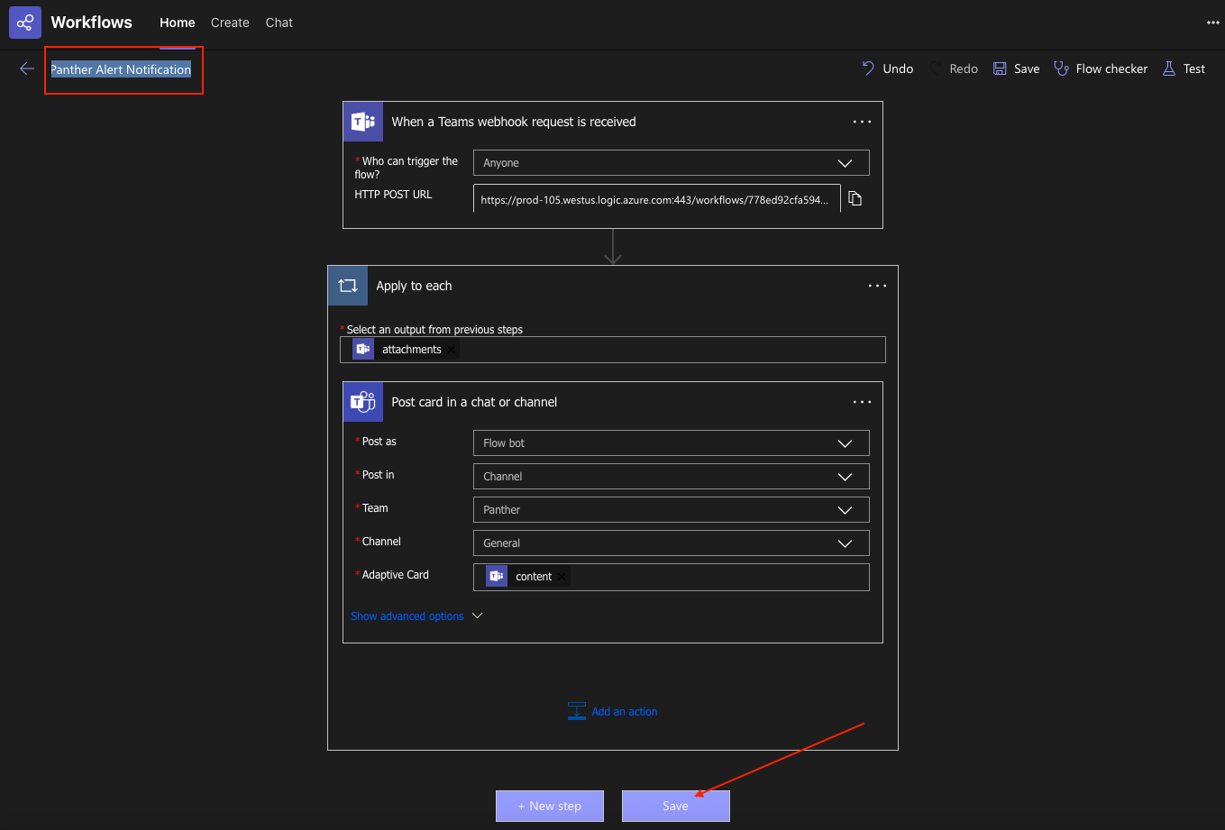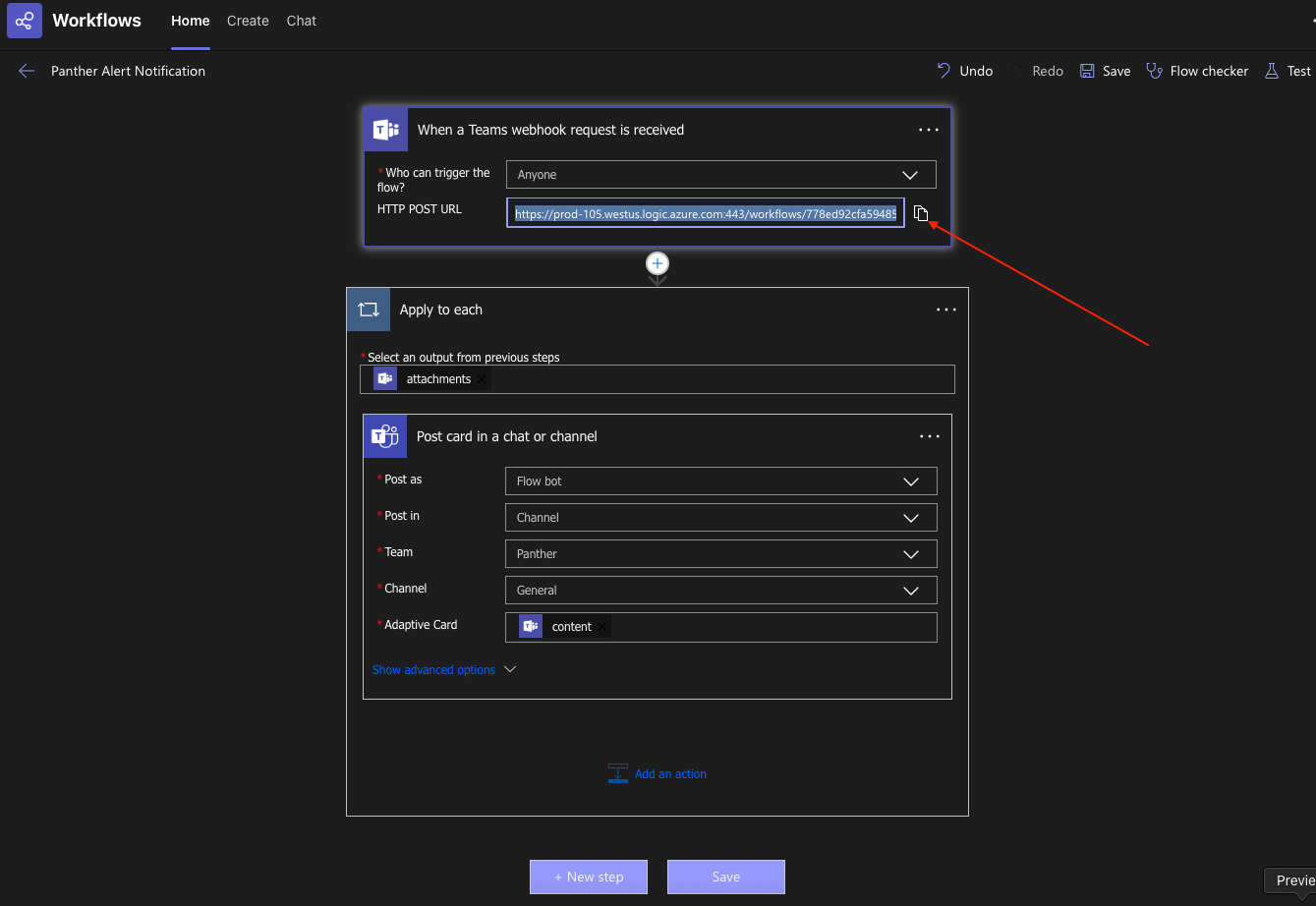 ### Configure the Power Automate Workflow in Microsoft Teams