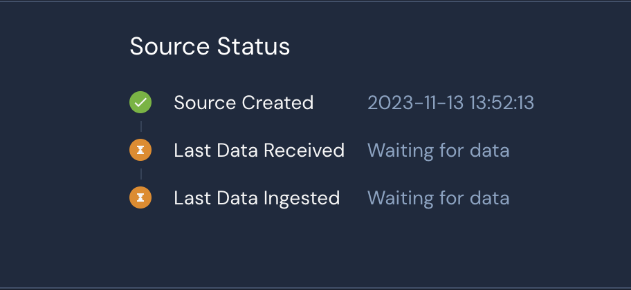 * To monitor the creation process, click **View Log Source**. You will be directed to the source's details page, where you can view **Source Status**:\\