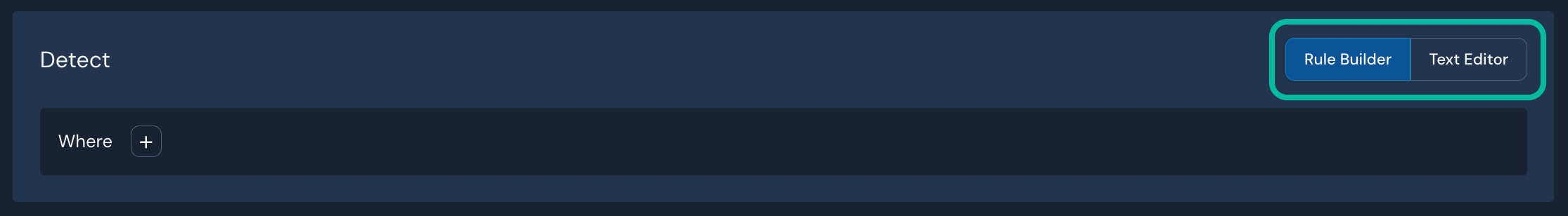 ![Under a "Detect" title, there are two tabs: Rule Builder and Text Editor.](https://4011785613-files.gitbook.io/~/files/v0/b/gitbook-x-prod.appspot.com/o/spaces%2F-LgdiSWdyJcXPahGi9Rs-2910905616%2Fuploads%2Fgit-blob-bd348618146b0492cfc7c80ebcfddeaa8a24bb8e%2FScreenshot%202025-06-17%20at%206.14.03%E2%80%AFPM.png?alt=media)