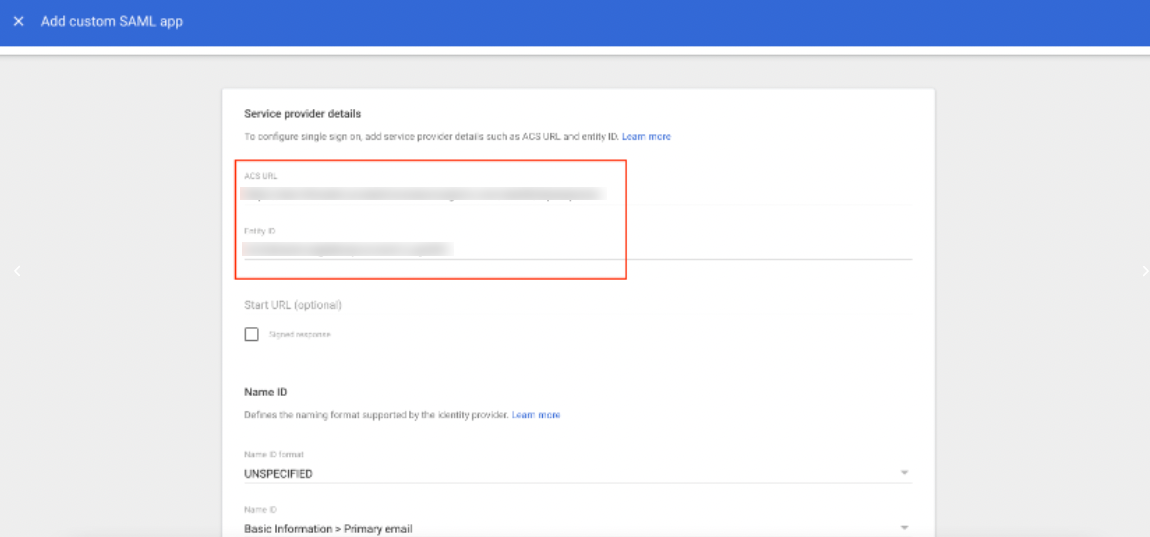 * **ACS URL**: Paste the **ACS Consumer URL** value you obtained in the Panther Console in Step 1.